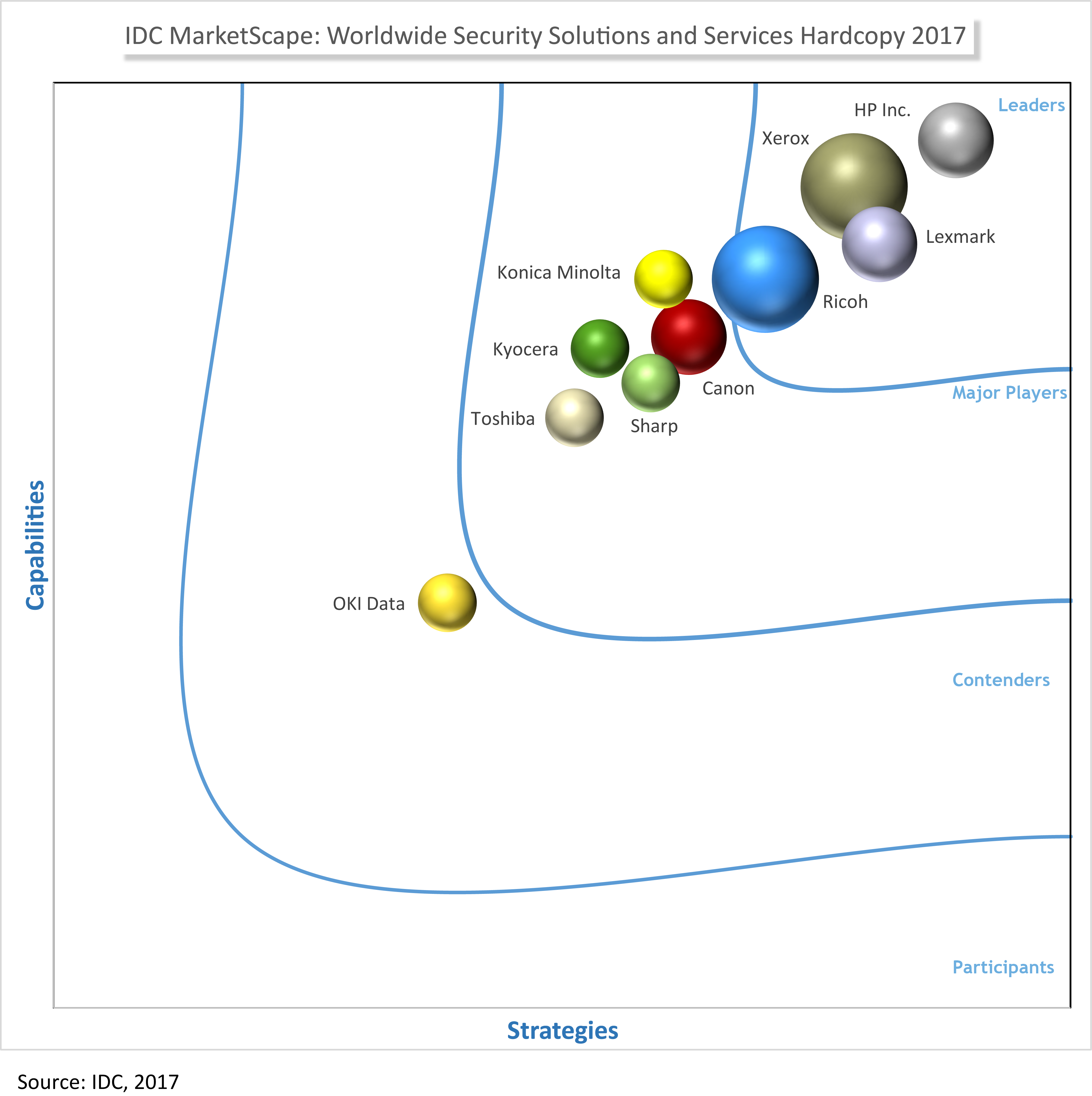 Xerox is proud to be a leader in the first ever IDC MarketScape: Worldwide Security Solutions and Services Hardcopy Vendor Assessment. The report states “Organizations should consider Xerox when looking for a broad solutions portfolio and a wide range of consulting and implementation services, with an emphasis on integration of print security within an existing IT infrastructure and framework. Xerox should also be on the short list when flexible pricing options and tight project management are top of mind.”
